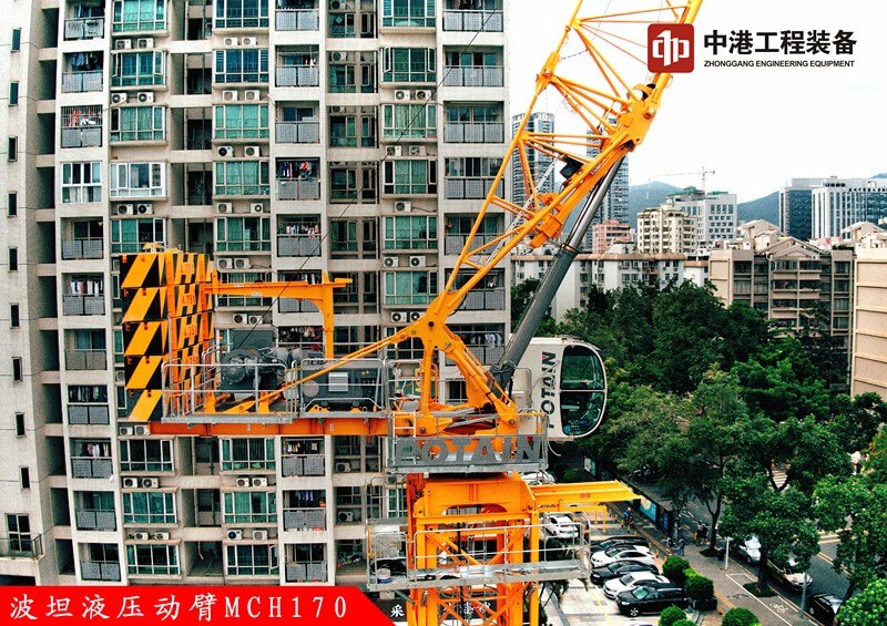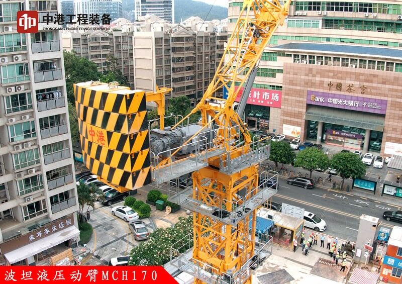 MCH170這款液壓動(dòng)臂塔機(jī),特別適合工地狹窄擁擠,空中回轉(zhuǎn)受限,對(duì)安全高效有著高要求的城市建筑施工。同時(shí)液壓油缸變幅動(dòng)臂相較于通過卷揚(yáng)機(jī)鋼絲繩變幅的動(dòng)臂塔機(jī)技術(shù)優(yōu)勢(shì)更明顯。